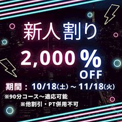 - 070-4288-446610:00~翌5:0060分 9,000円~カード利用可クーポンあり★フリープラン通常コース 60分10000⇒9000円!!★コミコミフリープラン60...